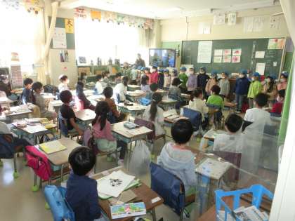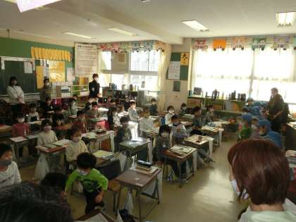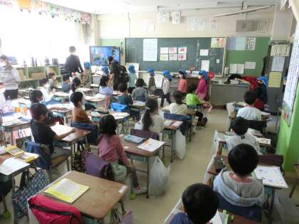 毎年、塚戸小学校では保育園との交流を行っています。交流の具体的な内容は、1年生が保育園児に小学校の生活について紹介することです。保育園児にとても小学校の雰囲気を感じることができます。今日は4つの保育園が来校され短い時間でしたが交流を行いました。