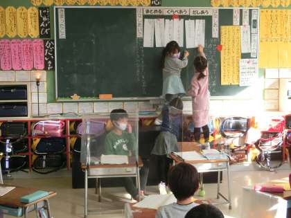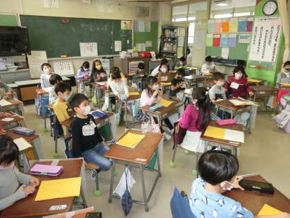 1年生の学級会では、折り紙大会の計画の話し合いをしていました。司会をするメンバー、黒板に意見を記入するメンバー、自分の考えを堂々と発言するメンバー、1年生とは思えないような話し合いでした。みんなで話し合って決めた折り紙大会の成功を願っています。