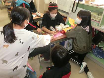 明日は、なかよしフェスタが行われます。3〜6年生までの各学級でお店を開きます。今年は、新型コロナウイルス感染拡大を防ぐため遊びに行く学級を制限して行います。5、6時間目は前日準備をしている学級が多く、協力して取り組んでいました。明日が待ち遠しいです。テーマは「仲間との笑顔、最高の交流〜つなげよう塚戸の輪〜」です。