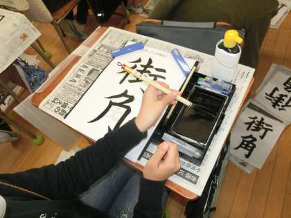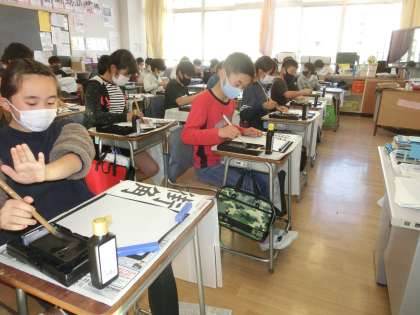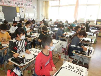 6年生の書写では「街角」という文字を書いていました。高学年になると画数も多く、しかも文字のバランスがとりずらい漢字を書きます。6年生みんな姿勢よく書くことができました。