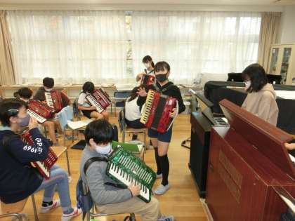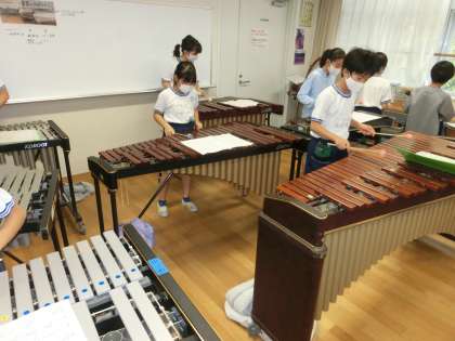 昨日は6年生の音楽を紹介しました。今日は5年生の音楽を紹介します。「アンダー ザ シー」という曲に挑戦です。5年生のメンバーにとっては難しいようで完成まではもう少しかかりそうです。しかし、この経験が来年6年生になった時に生きてくるはずです。