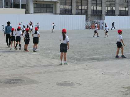 寒さも厳しくなってきましたが3年生は元気に外で体育を行いました。キックベースボールでは攻守入り交えて楽しく、安全に学習に取り組むことができました。
