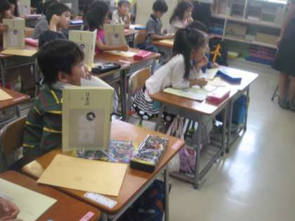 1年5組で、教科「日本語」の区の研修会が行われました。中村教諭の師範の授業を見て、区の先生方が研修会を開きます。日本語が好きな子供たち、そして先生です。