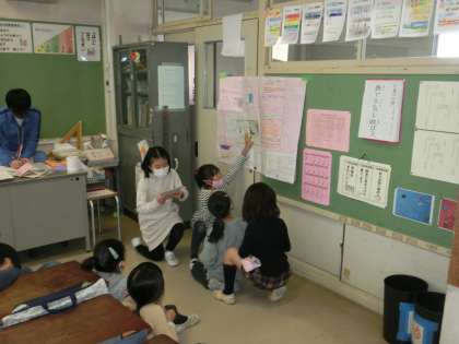 2年生生活科「えがおのひみつたんけんたい」では発表会を行いました。発表する側も真剣です。聴く側も真剣です。