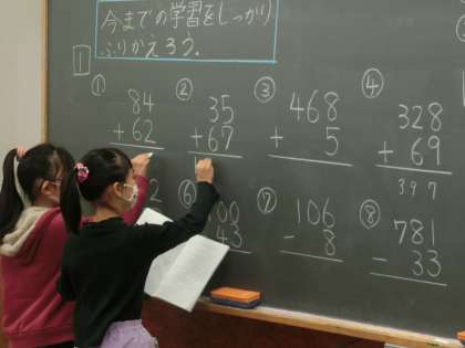 2年生では算数のまとめにも入っています。たしざんのひっ算を復習していました。