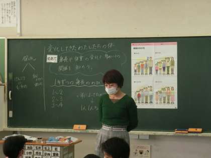 保健の学習に取り組んでいました。4年生は「変化してきたわたしたちのからだ」、6年生は「生活のしかたと病気」です。4年生は入学から3年生までにどれくらい身長が伸びたのか調べていました。