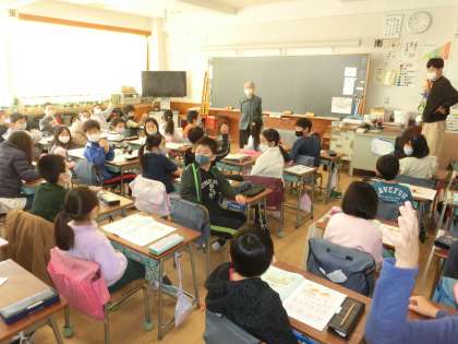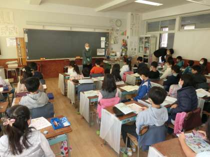 3年生の算数ではそろばんがあります。今日、そろばんの先生が塚戸小にいらっしゃって出前授業を行っていただきました。講師の名前は計良(けら)先生。今日と明日の2日間指導していただきます。