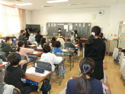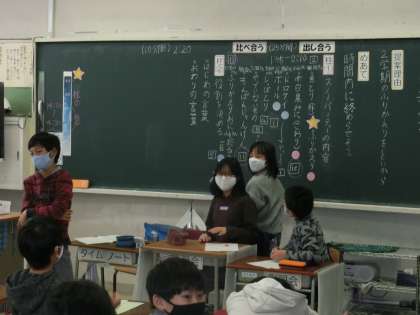 2学期終わりのお楽しみ会の計画を話し合っている学級、国語で友達に本の紹介をする学習をしている学級がありました。どのクラスも落ち着いて学習に励んでいました。