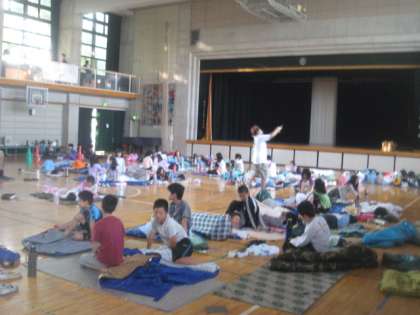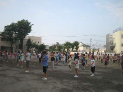 6時起床、みんな元気に起きました。一人一人寝るのはまちまちでしたが・・・・。体育館での睡眠もとれました。おやじの会のをはじめ、大人の方がしっかり見守りしてくれました。ラジオ体操をしてしっかり目覚めました。