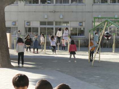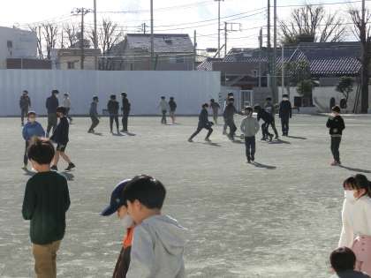 久しぶりに会う友達と仲良く遊ぶ姿が見られました。また、新BOP棟がほぼ完成し、仮囲いがとれ校庭が広くなりました。子どもたちの笑顔、遊ぶ姿を見るとこちらも元気をもらえます。寒さに負けずに遊ぶ塚戸の子どもたちです!