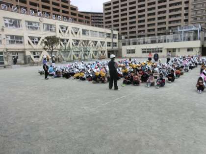 毎月、塚戸小学校では避難訓練を行っています。地震、火事の他、不審者等、様々な出来事を想定した訓練を行っています。今日は、児童にあらかじめ告知せず「中休みに地震が起きて、火災が発生した」また、「児童が1人行方不明(あらかじめ決めています)で、職員が探しに行くという」想定のもと行いました。地震は日時を選びません。雨の日、雪の日、暑い日、いつ起こるかわかりません。今日はとても寒い日でしたが、いい訓練となりました。