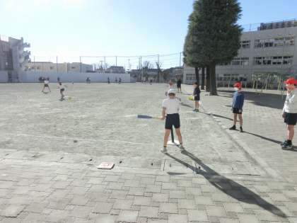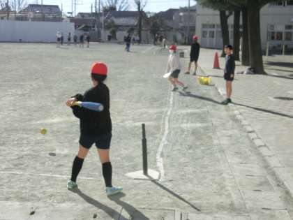 1月13日(水)6年生体育「ティーボール」