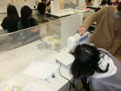 6年生の家庭科ではぞうきんづくりに挑戦していました。手縫い、ミシン縫いと今まで学習してきた技能を生かしていました。「学校に感謝の気持ちを伝えよう」というねらいもあるようです。1人1人の心がこもったぞうきんです。
