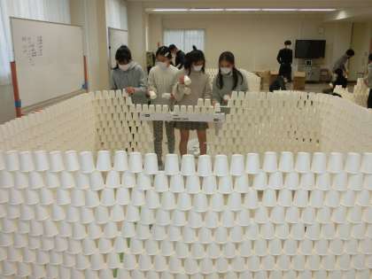 2月2日(火)6年生図工「紙コップ、コップ、コップ、コップ」
