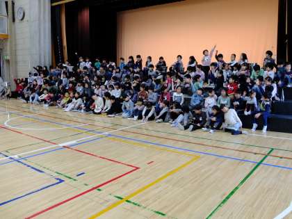 本日、「キッチンバンド」の撮影を行いました。2学期に担当する学期を決め、3学期のはじめからこれまで練習を積んできました。今日の撮影では、「いよいよ本番!!」と緊張を感じながらも、練習の成果を生かして、楽しんで演奏する子どもたちの姿が見られました。写真は、演奏を終え満足感に溢れた子どもたちの姿です。