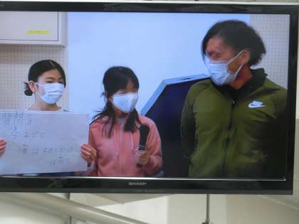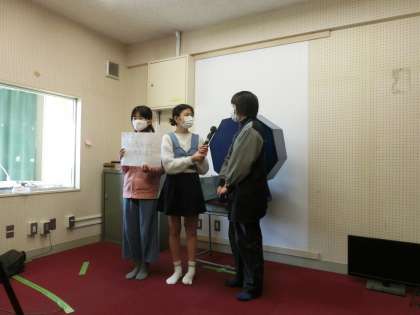 今朝は集会委員会によるゲーム集会がありました。くじで当たった先生が登場し、先生方にインタビューをしました。インタビューの内容は・今までで一番恥ずかしかったことは何か?・どうして先生になったか?・好きな給食は?でした。とても盛り上がりました。集会委員の皆さんありがとうございました!