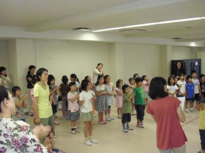 1学期最後の歌声広場の活動が行われました。集まった子どもたちはリズムに合わせて動作をしながら、元気いっぱいに歌声を響かせていました。1学期の間ご協力いただいた「おたまじゃくし」の皆様、子どもたちのためにありがとうございました。2学期以降もよろしくお願いいたします。