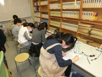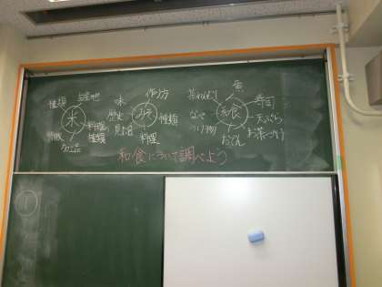 5年生の家庭科ではパソコン室で和食について調べ学習を行いました。米をテーマにした調べ学習では種類や産地、特徴などを調べ、味噌では歴史や調理方法、種類などを調べました。また、すしや天ぷら、おでんなどの和食についても熱心に調べていました。