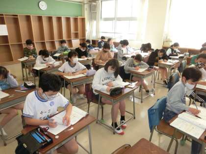 4年生の算数では「小数と整数のかけ算、わり算」を学習しています。4年生の3学期ですので確実に身に付けたいところです。一般的に算数では「かけ算」や「わり算」と言った具合に「かけ算」ならかけ算の学習を行います。今日の学習では問題を把握して「何算」なのか判断しなければなりません。計算ができても、式が違えば正しい答えを出すことができません。今後も、数直線やテープ図、絵などを用いて考えていきます。