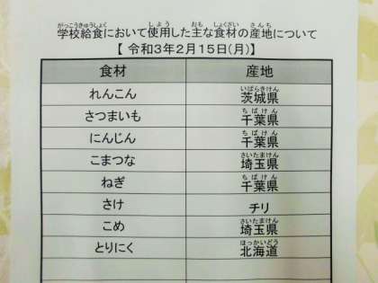 令和3年2月15日(月) 今日の給食