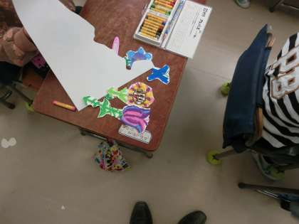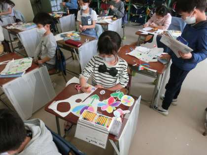 1年生の図工は「こころの花をさかせよう」という学習をしました。4月に入学する新一年生の教室掲示に使う花を描きました。一人一人、思い思いの花を表現しました。1年生の暖かな心がこもった花です。新一年生のために、ありがとう!