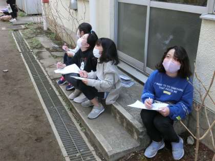 4年生の図工は学校にある木、近くの公園のある木をじっくり見て描きました。校舎の裏側の木をじっくり観察しているメンバーに感心しました。春の暖かな一日でした。外に出て、じっくり木を見つめる時間も立派な教育活動です。