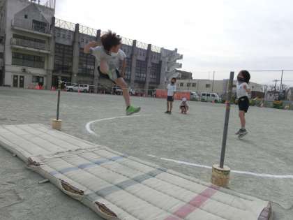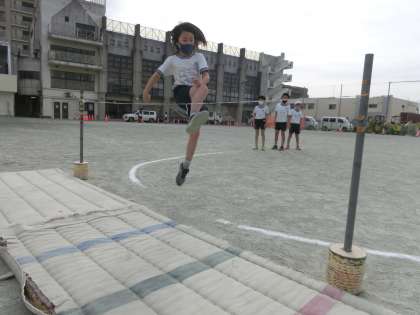 3年生の体育では高跳びに取り組んでいます。リズムよく助走をして、力いっぱい踏み切って、空中姿勢、そして着地に入ります。3年生のメンバーも、力いっぱい踏み切ることができていました。素晴らしい!