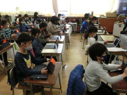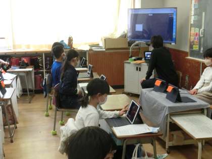 3年生のあるクラスでは、タブレット端末の使い方を学びました。少しの説明で子どもたちはどんどん学んでいきます。さすがです!