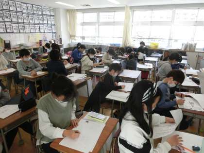 6年生は明日の引継ぎ式に向けて、発表原稿の作成に取り組んでいました。今年1年、塚戸小をリードしてきた6年生が、5年生に様々な活動を引き継ぎます。引き継ぐ5年生にとっても大切な行事です。6年生、しっかり引継ぎをしてください。
