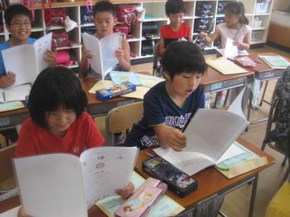 各教室では、「あゆみ」を先生からもらっています。一人一人、話をしながら渡します。1学期のがんばりを伝えたりみんなでたたえ合ったりします。「あゆみ」の形式も以前と変わりました。いかがだったでしょうか。