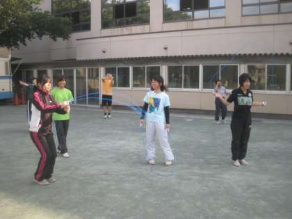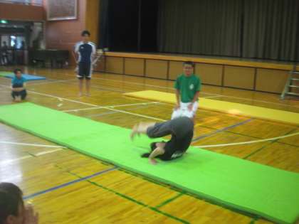 先生たちは、夏は研修です。今日は、近隣の小学校の先生たちが集まって、体育の実技研修会を行いました。マット運動となわとびです。マット運動の基本的な授業の仕方、なわとびのいろんな跳び方を研修しました。体育の授業で使えます。