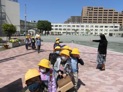入学して2日目、1年生は元気に登校しました。保護者の皆様、1年生の送り出しありがとうございました。本日、下校時はコース別に分かれて下校指導を行いました。「1年生が安全に下校できる」ことをめあてに4月23日(金)まで下校指導を行います。ご家庭におきましても「歩道を歩く」や「信号をよく見る。右、左、右の安全確認」等、基本的な交通ルールをご指導ください。