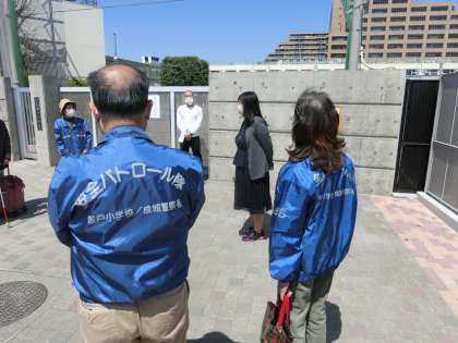 TAP(塚戸安全パトロール)の合同パトロールがありました。今年度から登下校時は正門を使うことになりました。塚戸小は地域の方々に支えられています。TAPのみなさん、ありがとうございます。今年もよろしくお願いします。
