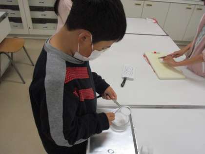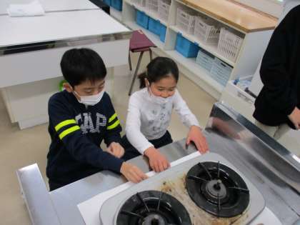 先週はガスコンロを実際に付け、今週は包丁や計量スプーンの使い方を学びました。