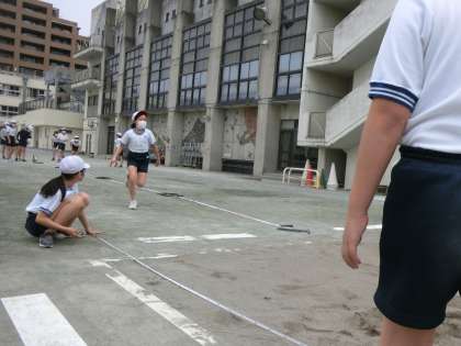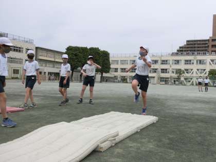 6年生の体育では走り幅跳びに挑戦しました。「走り幅跳びの記録を伸ばすためのポイント?」は何か?6年生の子どもたちには、そのことを考えてほしいです。ただ、漠然と走っていては記録は伸びません。記録を伸ばすポイントがあるはずです。頑張れ、6年生!