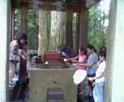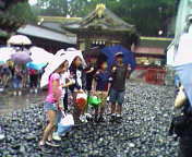 東照宮では、グループごと自由行動です。雨が小雨なったり本降りになったりと、そんな中ですが、子どもたちはたちは楽しんで見学しています。