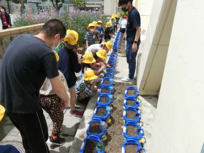 5月14日(金)1年生生活科「あさがお」を植えました!
