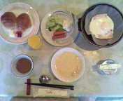 7時、朝食。みんなで食べるのは楽しいものです。食も進みます。朝食後、各部屋で片付けを終えくつろいでいます。早くできるようになりました。