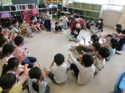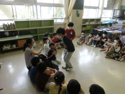 梅雨に入ると、校庭で遊ぶことができない日があります。今日の昼休み、校舎内を回っていると担任の先生と仲良く、楽しくクラスレクをしていました。いい時間でした。