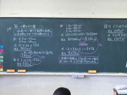 5年生の算数「小数のかけ算」も大詰めを迎えました。今まで、小数のかけ算の計算技能を高めてきました。今日は小数のかけ算で面積や体積を求めることができるのかを確かめました。小数のかけ算の計算は整数と変わりません。しっかり手順を確認して、確実性を高めてください。5年生、ケアレスミスに気を付けてください!