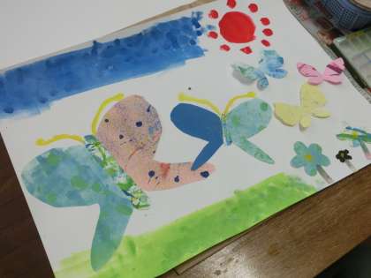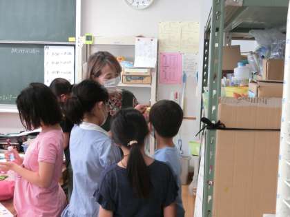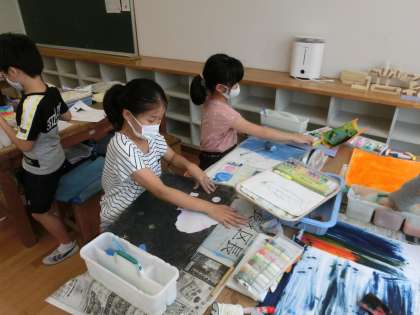 4年生の図工では色紙を組み合わせて主人公をつくる学習をしています。図工の先生丁寧な指導で子どもたちは楽しく学習をしています。完成した仲間もいました。もう少しで完成の仲間もいました。作品が楽しみです。