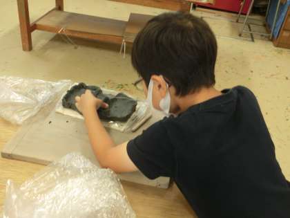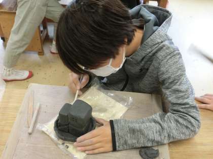 5年生の図工「水と○○」では真剣に取り組んでいます。今日のめあては「細かい小さなところにもこだわってつくりこもう」です。一人一人、めあてに向かって活動できました。