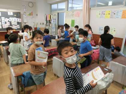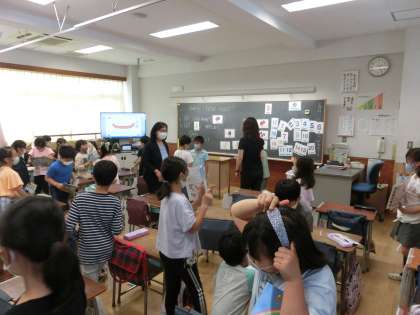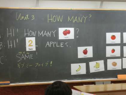 3年生の外国語活動では「○○はいくつありますか?」と尋ねる学習をしました。友達と尋ね合う姿が見られました。