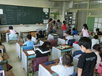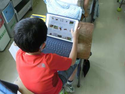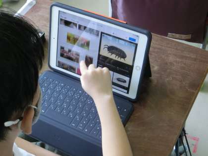 生活科で小さな虫について調べました。タブレット端末を使い一人一人熱心に調べました。
