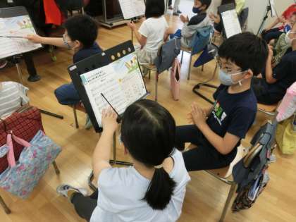 4年生の音楽で歌のにじを学習しました。隣の友達が音符を示し、手拍子でリズムをとりました。音楽は「音を楽しむ」ことを改めて感じました。