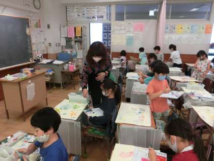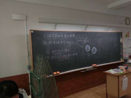 3年生の図工では「にじんで広がる色の世界」の学習をしています。今日のめあては