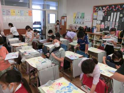 6月11日(金)3年生図工「にじんで広がる色の世界」