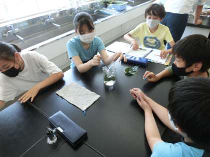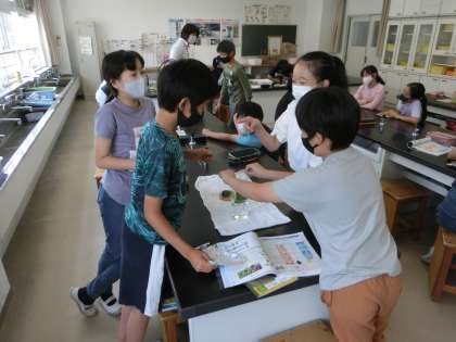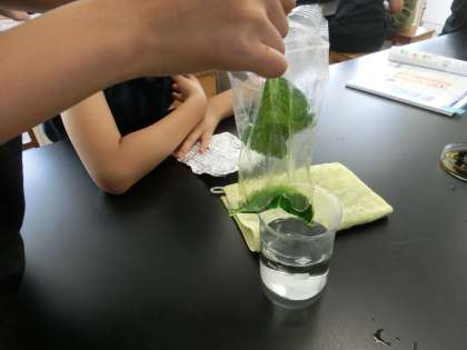 6年生の理科では「植物の養分と水」について学習しています。植物の葉に日光が当たるとデンプンができるか?の実験をしました。また、葉を柔らかくするするためにお湯につけました。きれいなヨウ素デンプン反応が見られました。