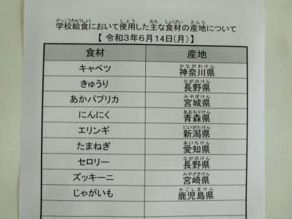 令和3年6月14日(月) 今日の給食
