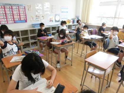 5年生の外国語では「すきな教科をたずねる」学習をしました。そのためには、国語は?社会科?算数は?理科は?英語で何と表現するのかを学ばなければなりません。子どもたちは頑張って取り組んでいます!